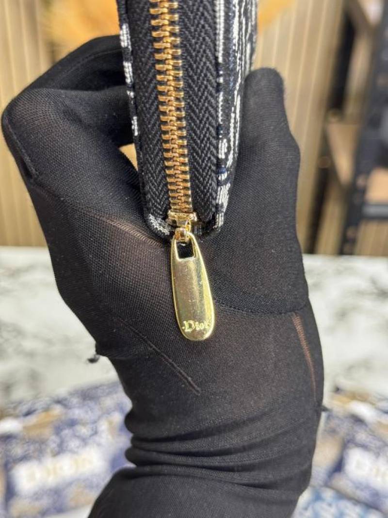DIO_R OBLIQUE ZIP WALLET WITH GOLD CD HARDWARE INCLUDES BOX AND DUST BAG (DXD002-BLACK)
